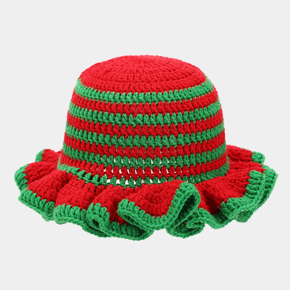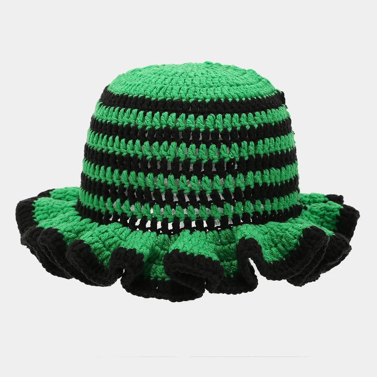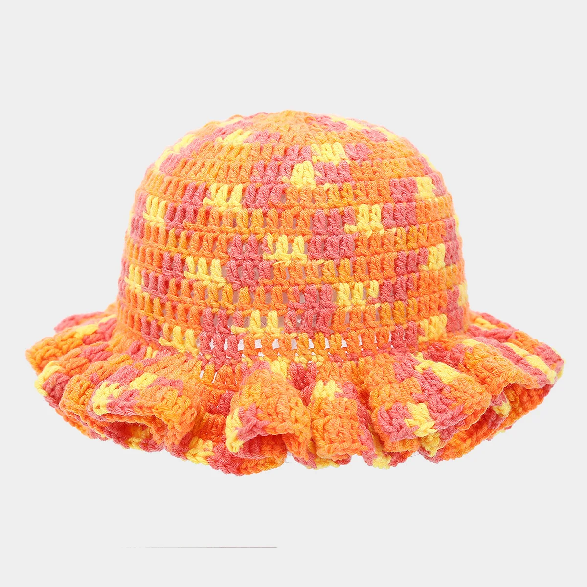 Ruffle Edge Knitted Bucket Hat Cross-border Hot Sale Hand Crocheted Hat Fashionable Colored Frilly Wool Bucket Hat