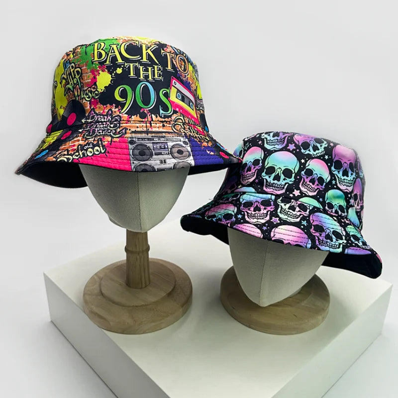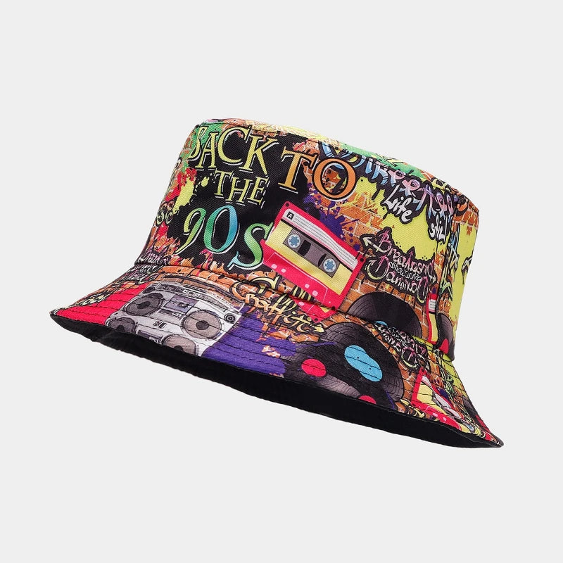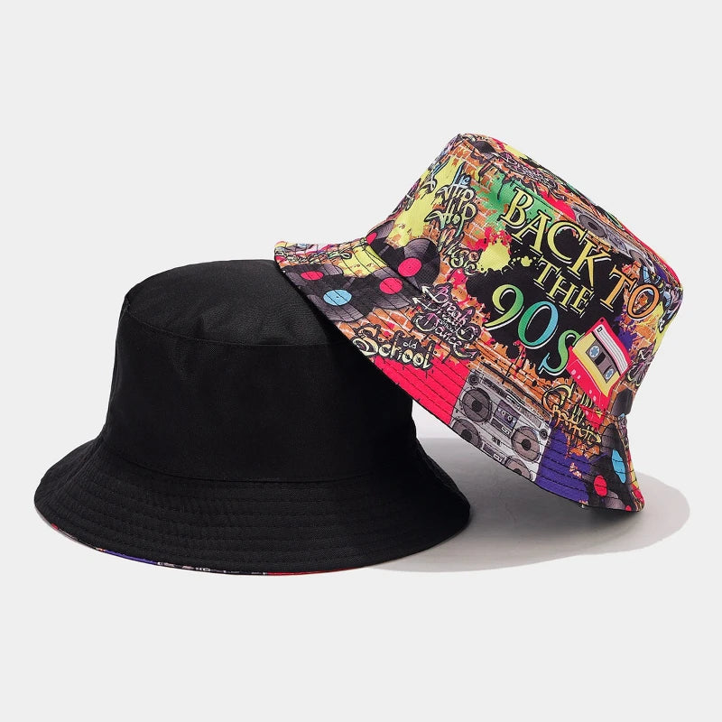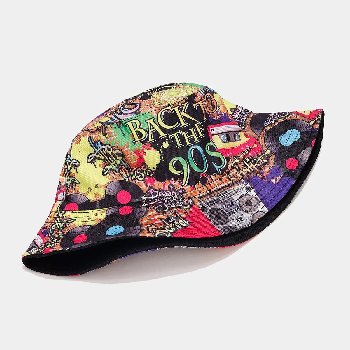 Summer Vintage 80 90 Party Graffiti Bucket Hat Men Women Reversible Panama European American Classics Bob Fishing Beach Sun Hat